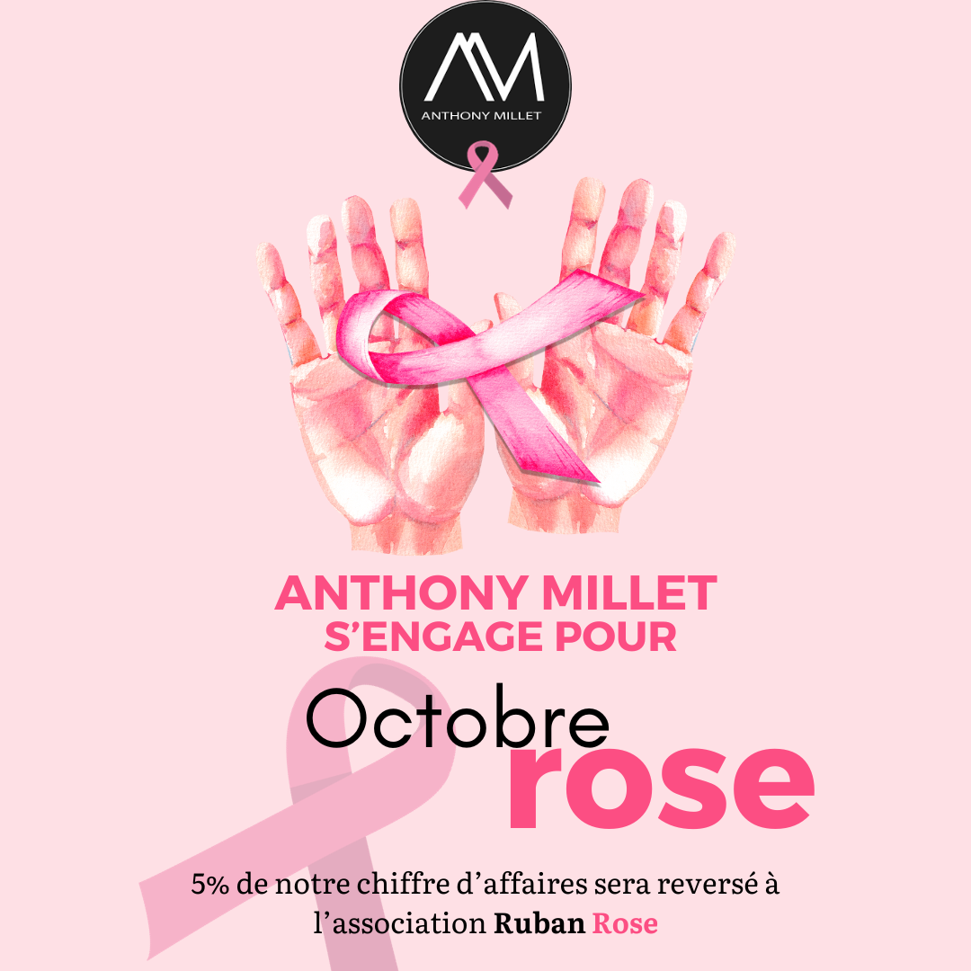 En ce mois d'octobre, synonyme d'engagement et de sensibilisation à la lutte contre le cancer du sein, Anthony Millet souhaite faire une différence significative. En tant que marque résolument engagée, nous avons décidé de participer activement à la campagne "Octobre Rose" en reversant 5% de notre chiffre d'affaires du mois à l'association Ruban Rose. Chez Anthony Millet, nous croyons fermement en la nécessité de soutenir la recherche, la prévention et l'accompagnement des personnes touchées par le cancer du sein.