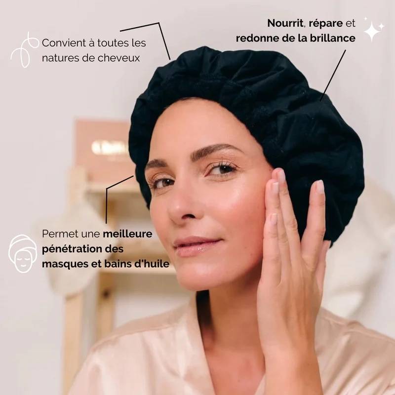 L'expérience est complétée par un délicieux moment de détente. Pendant que vous laissez agir ce prodige capillaire pendant dix minutes, vous avez l'occasion de vous évader, de méditer ou tout simplement de vous offrir un instant de tranquillité bien mérité. Votre bonnet chauffant devient votre passeport pour une oasis de bien-être où la chaleur et le soin s'entremêlent harmonieusement.